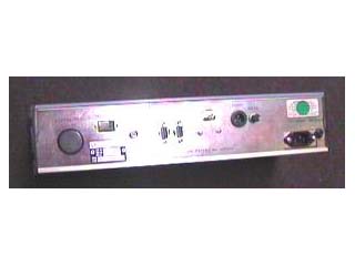 The front view of the HS400 which has been modified with the addition of display of the temperature of the reference oscillator and also a display showing the of the amount of correction in parts per 10^11. The three LED's from the controller PCB are also on the front panel.